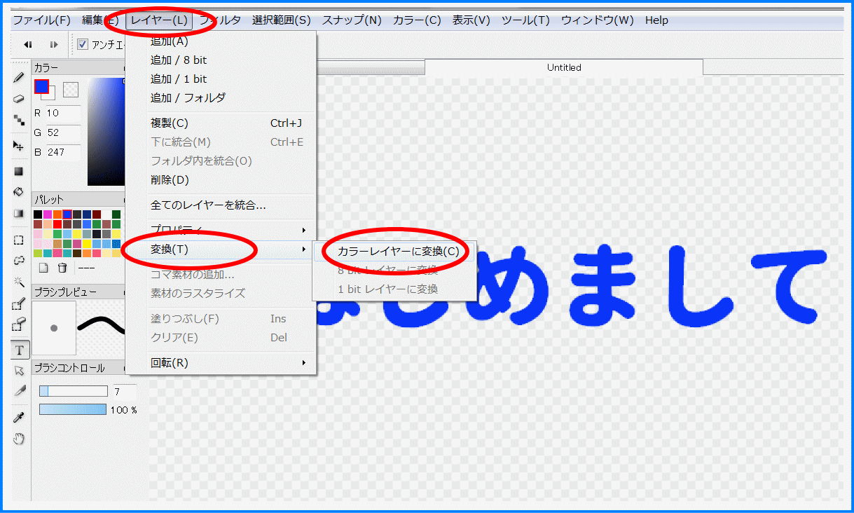 2. テキストの形式をカラーレイヤーに変換する